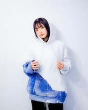 厳選したホワイトボディのパーカーに、相性抜群のブルーdenimにクラッシュ加工を施しリメイクした一点モノ