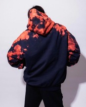 肉厚で重厚感のあるボディでT-RyGHT定番のタイダイ柄を表現。ボディが"ダークネイビー"だからこそ出るレンガの様な赤を表現。2つとないアイテム。